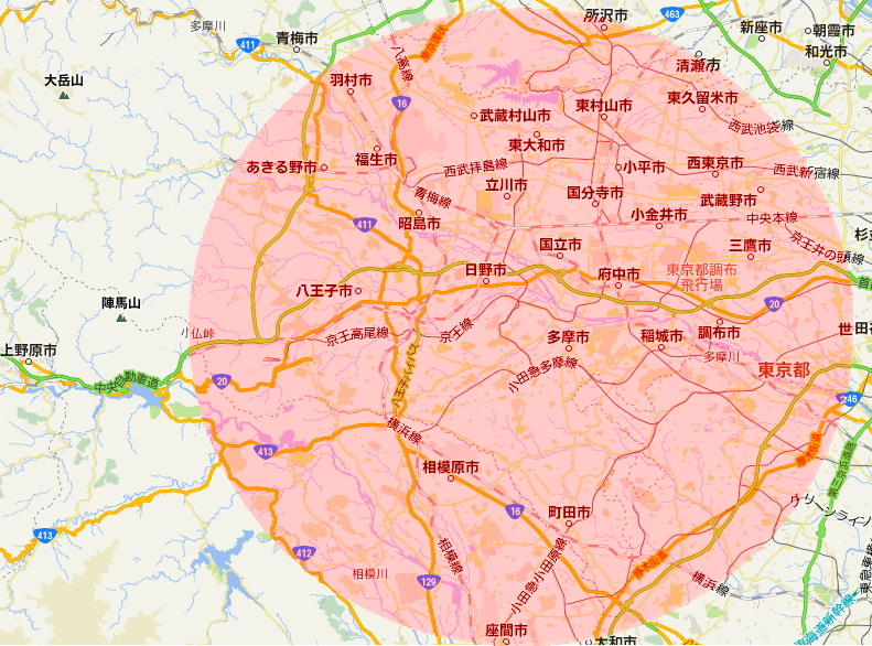 八王子を中心に三多摩まで、コンパニオンを派遣いたします。 遠方への出張は、ご相談ください。 ※地図をクリックすると拡大表示されます。